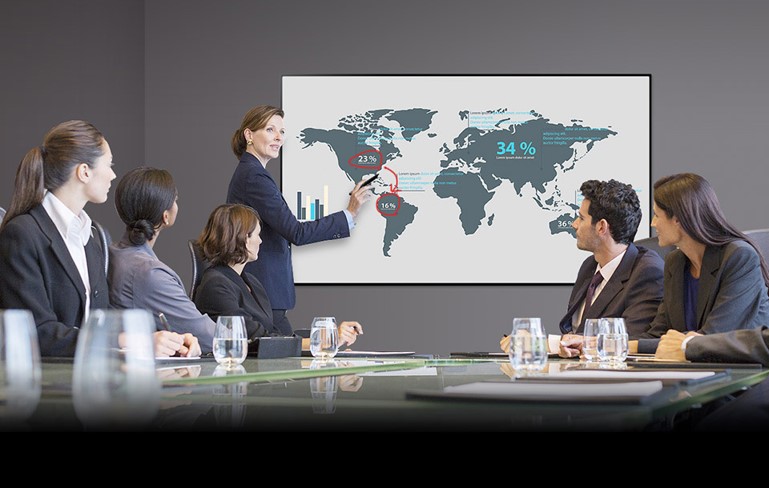 Nowoczesne sale konferencyjne z wyświetlaczami dotykowymi zmieniają prezentację w dynamiczny pokaz z obrazem rozdzielczości FulHD lub 4K.