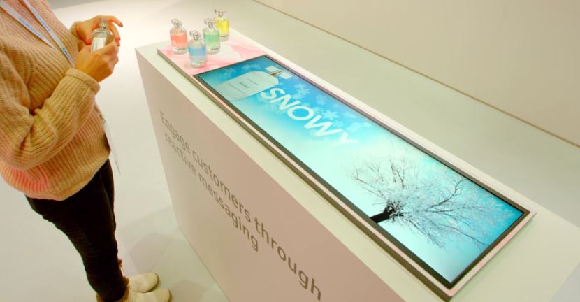 Możemy personalizować wiadomości powitalne, komunikaty promocyjne dotyczące danego produktu lub usługi – które zostaną automatycznie zaprezentowane na wyświetlaczu po wykonaniu przez klienta określonej czynności, np. podniesienia odpowiedniej marki perfum.