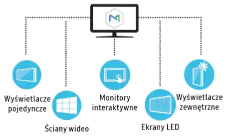 Możliwość sterowania wieloma typami wyświetlaczy – od urządzeń autonomicznych po ściany wideo.